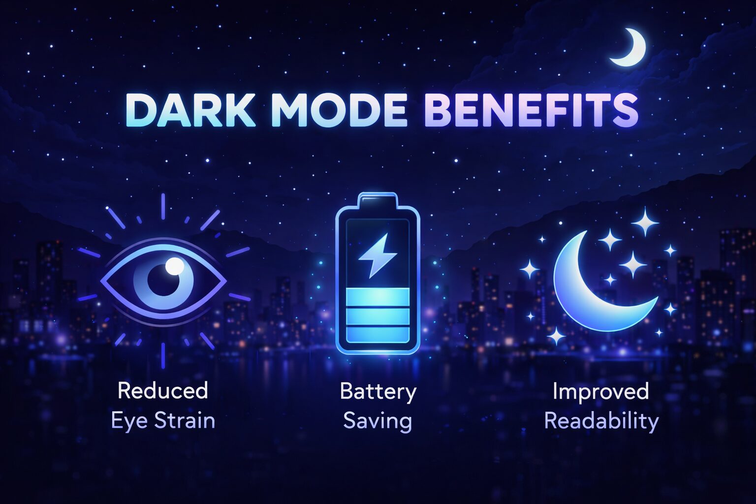 ダークモード(Dark Mode)は、Webサイトやアプリケーションの背景を暗色にし、テキストを明色で表示する表示モードです。従来の白背景に黒文字という「ライトモード」とは逆の配色を採用します。
