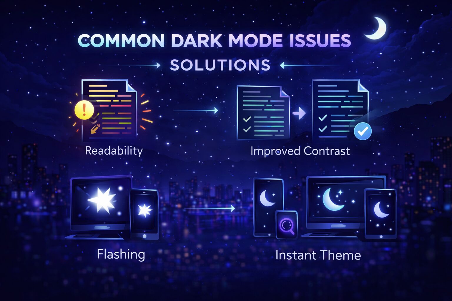近年、多くのWebサイトやアプリケーションでダークモード(ダークテーマ)が実装されています。AppleのiOS、macOS、GoogleのAndroid、WindowsなどのOSレベルでもダークモードが標準機能として提供され、ユーザーの間で急速に普及しています。