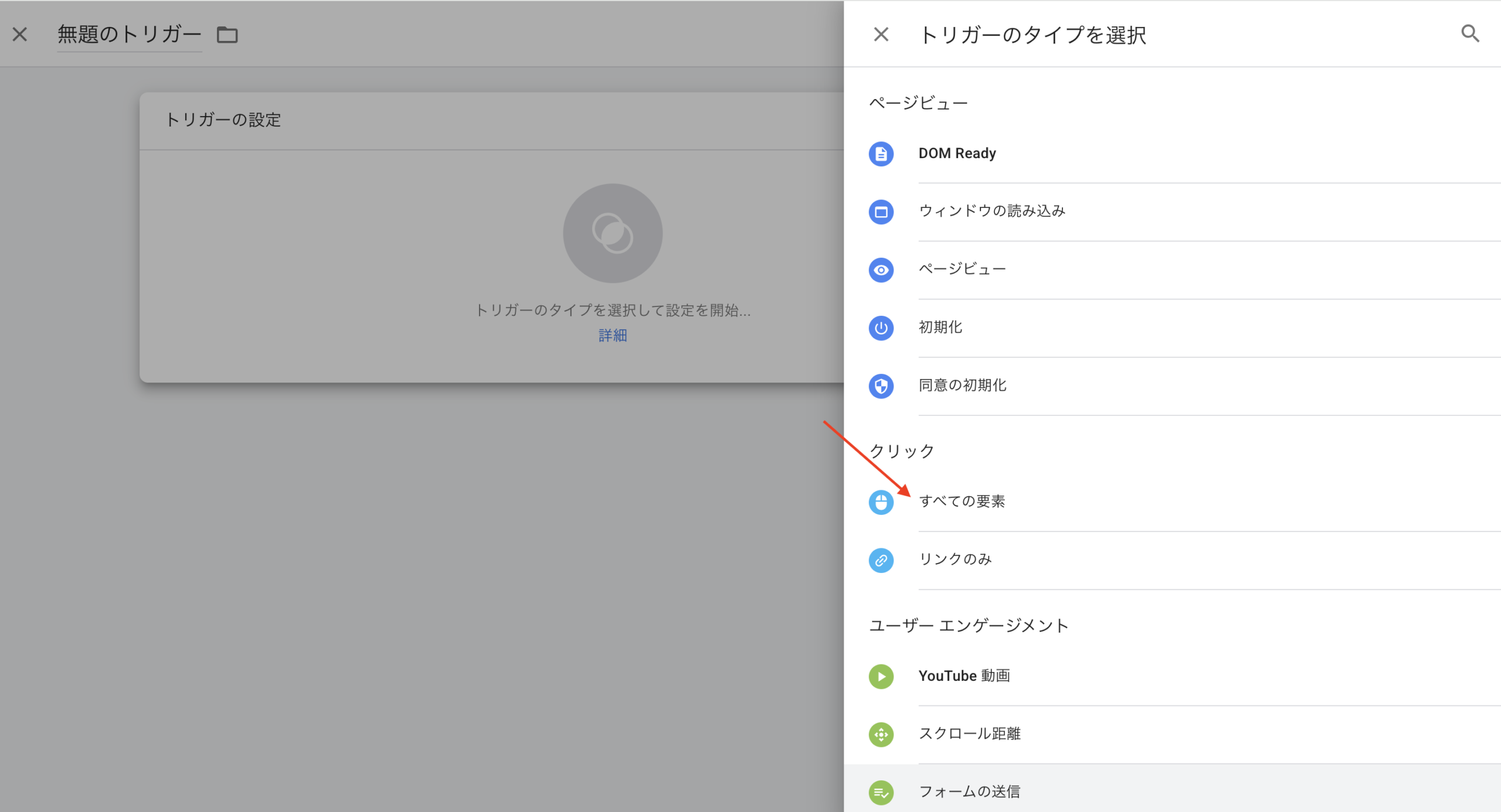 トリガータイプ: 「すべての要素」を選択