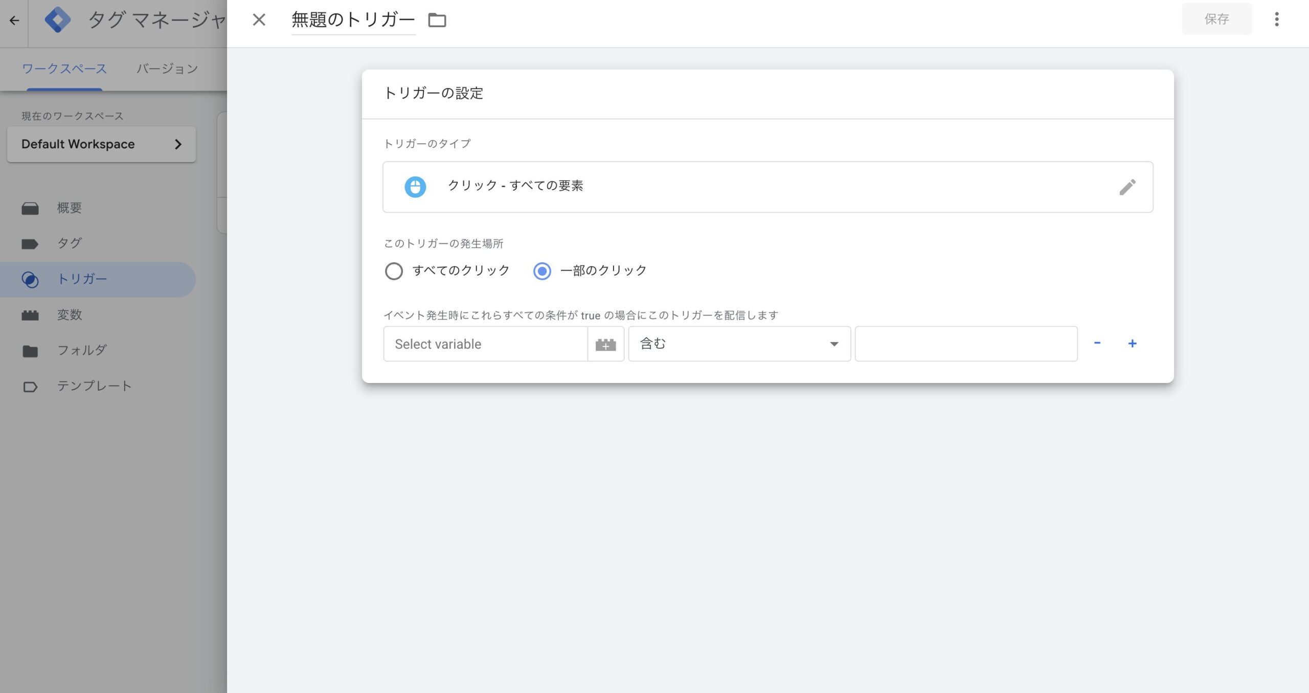 トリガーの発生場所: 「一部のクリック」を選択