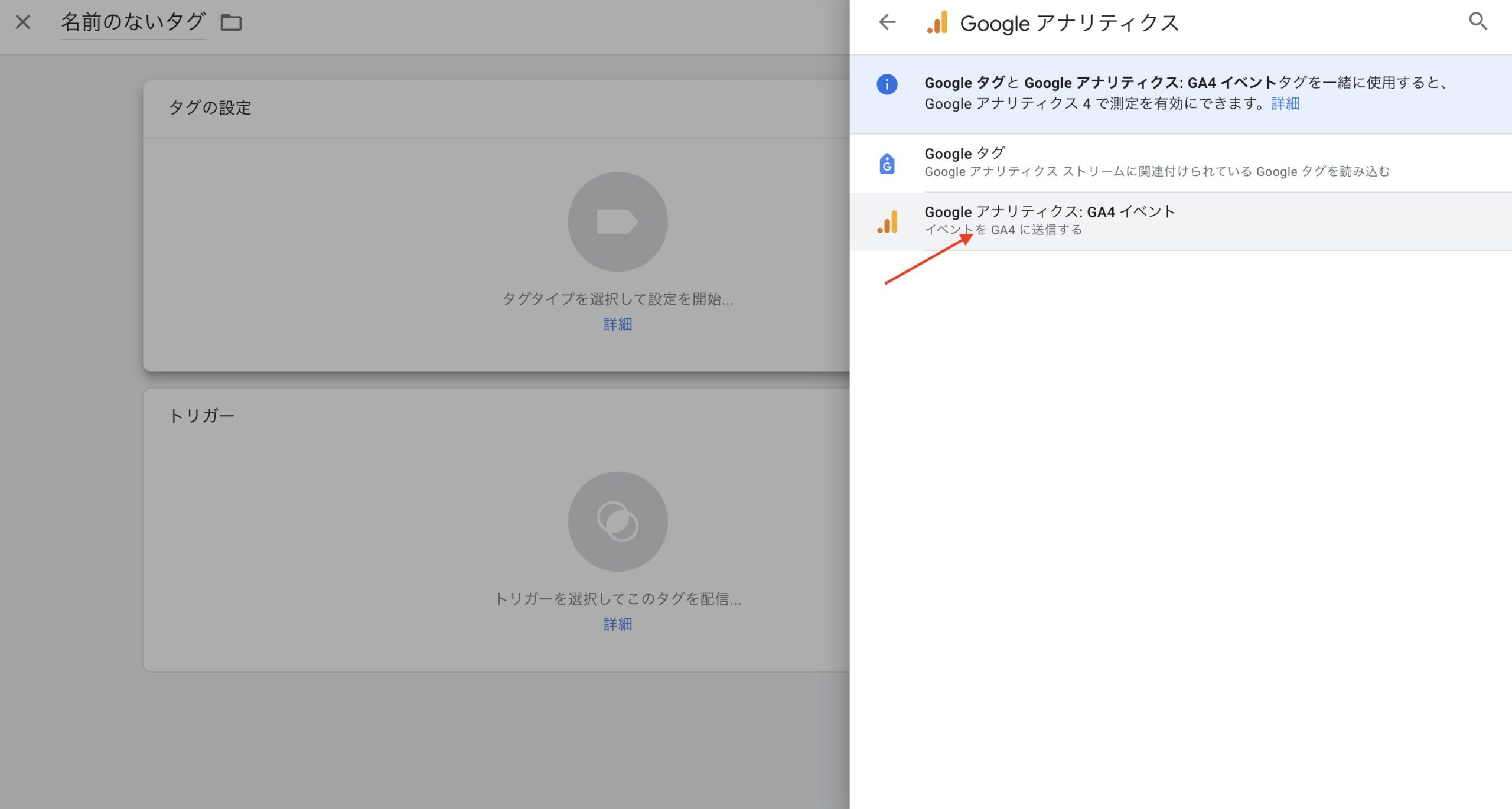 タグタイプ: 「Google アナリティクス: GA4 イベント」を選択