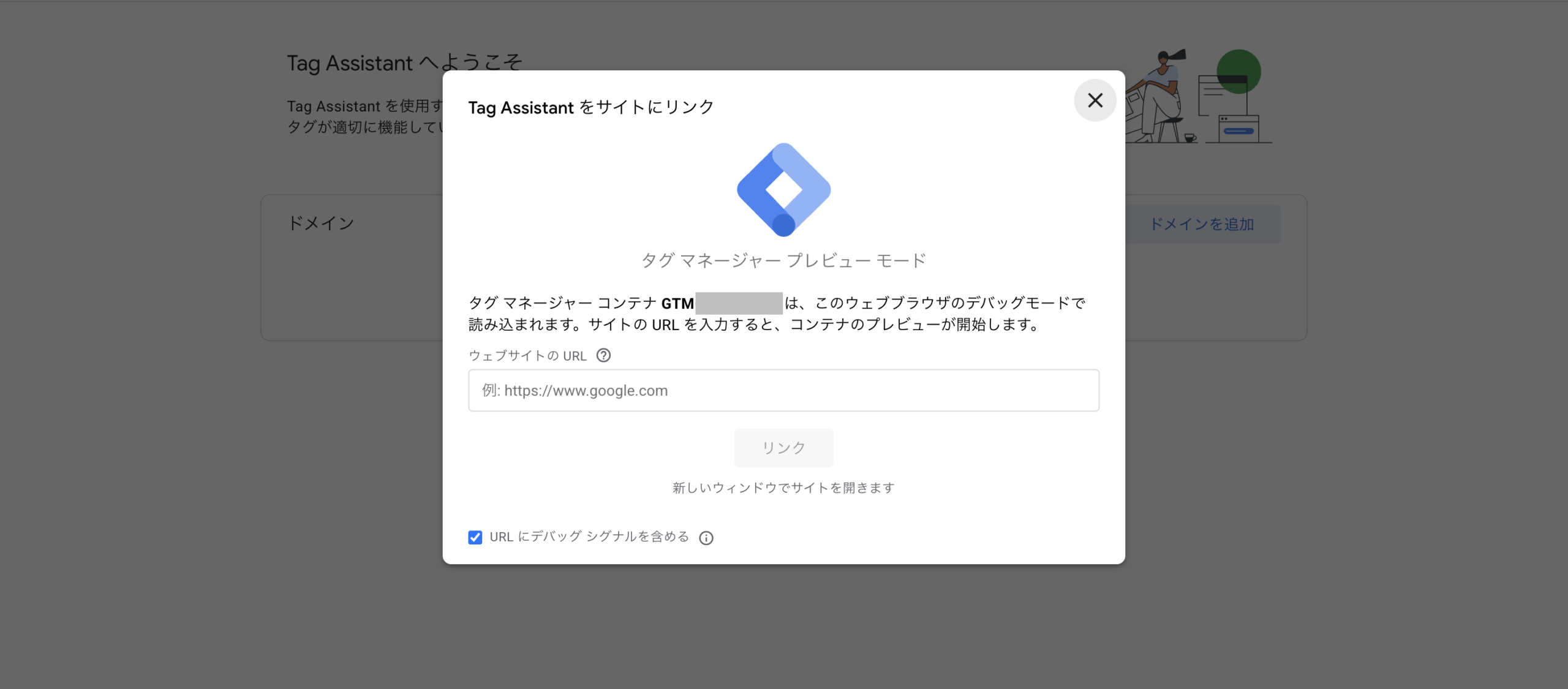 2. サイトURLを入力して「リンク」