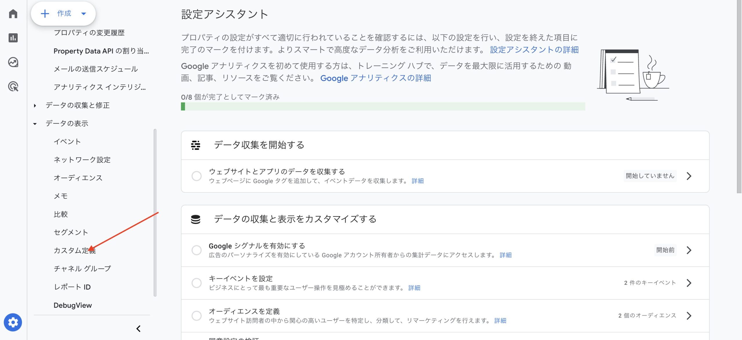 3. 「プロパティ」列から「カスタム定義」を選択