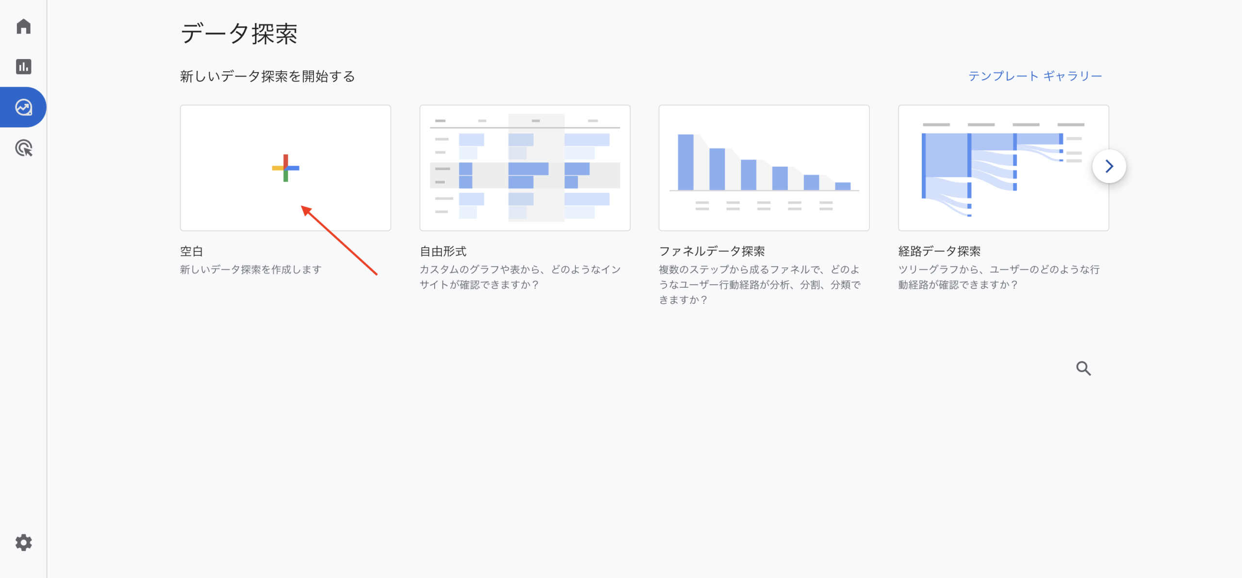 1. GA4の左メニューから「探索」を選択