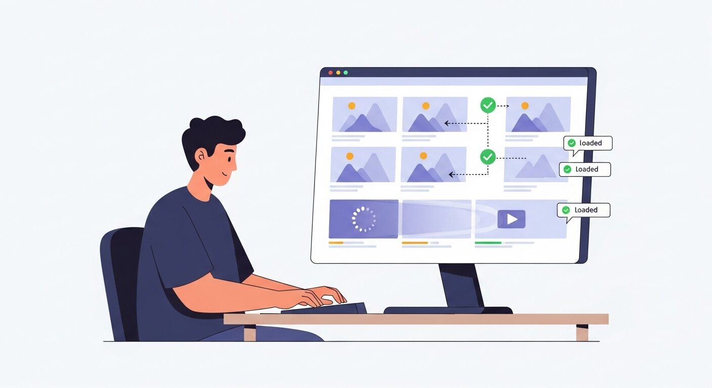 遅延読み込みとは、ユーザーがスクロールして画像や動画が表示領域に入る直前に、