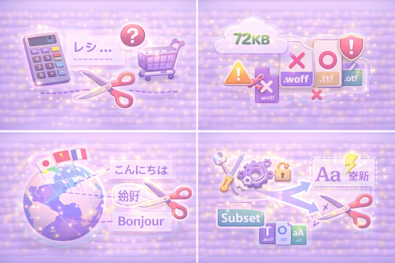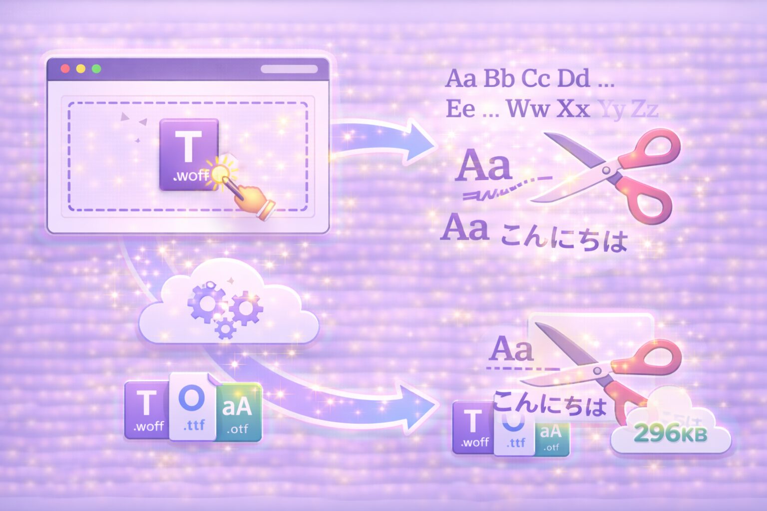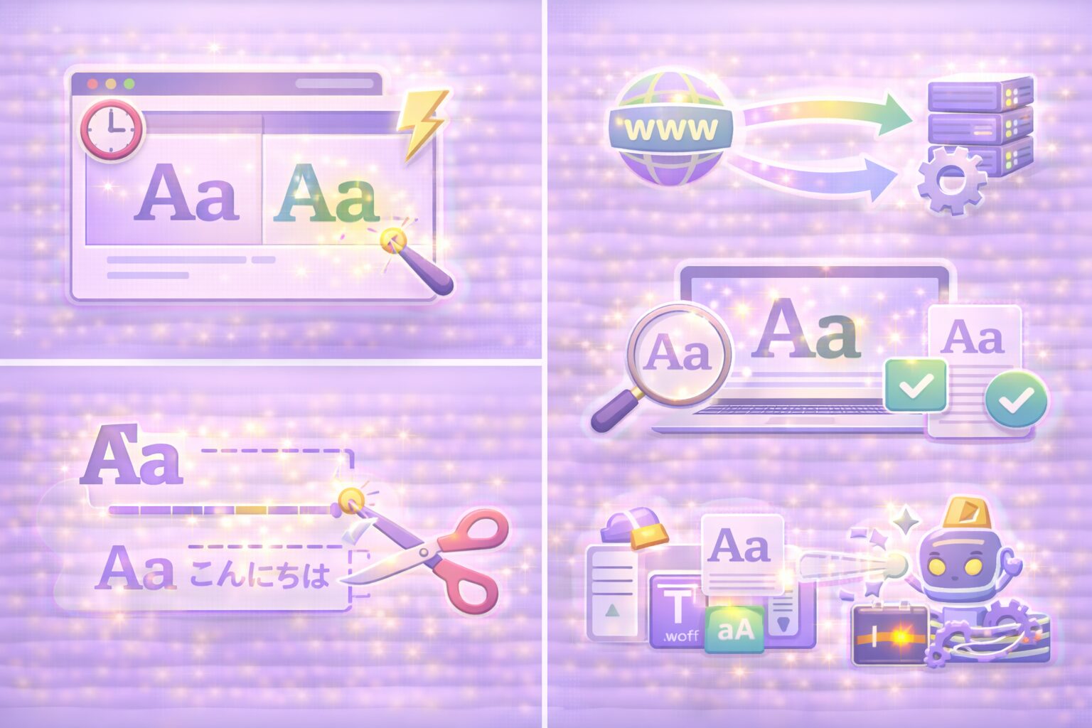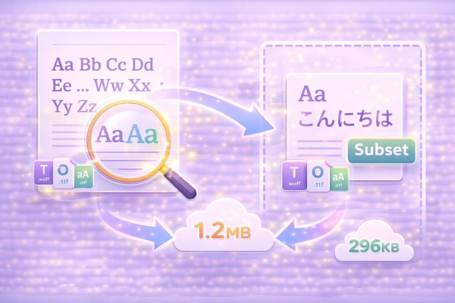 美しいタイポグラフィは、Webサイトの印象を大きく左右します。しかし、特に日本語フォントは文字数が多いため、ファイルサイズが非常に大きくなり、ページの読み込み速度に深刻な影響を与えます。